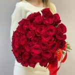 Роза эквадор 50 см – 51 шт.атласная красная лента – 1 шт.