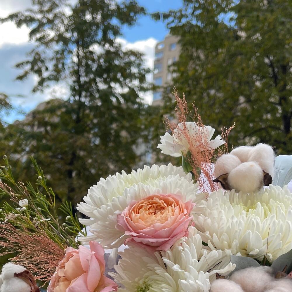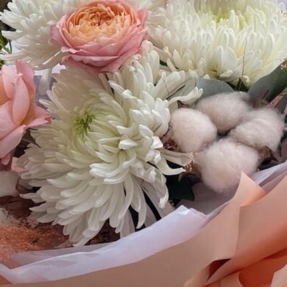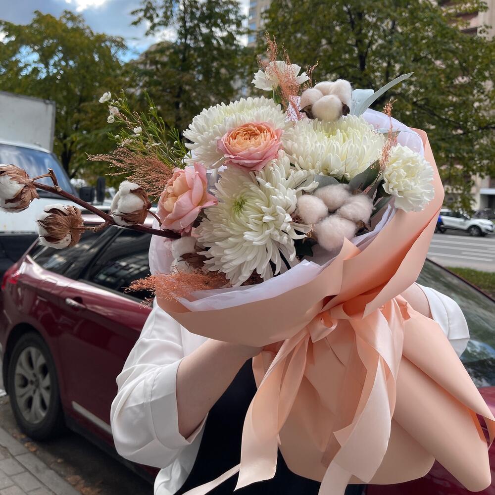 Категорий: Гвоздики, Пионовидные розы, Розы, Сухоцвет, Хризантемы