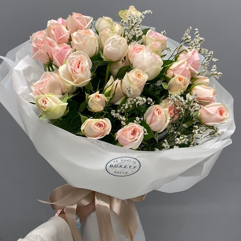 Лимониум – 1 шт. Кустовая роза – 6 шт.