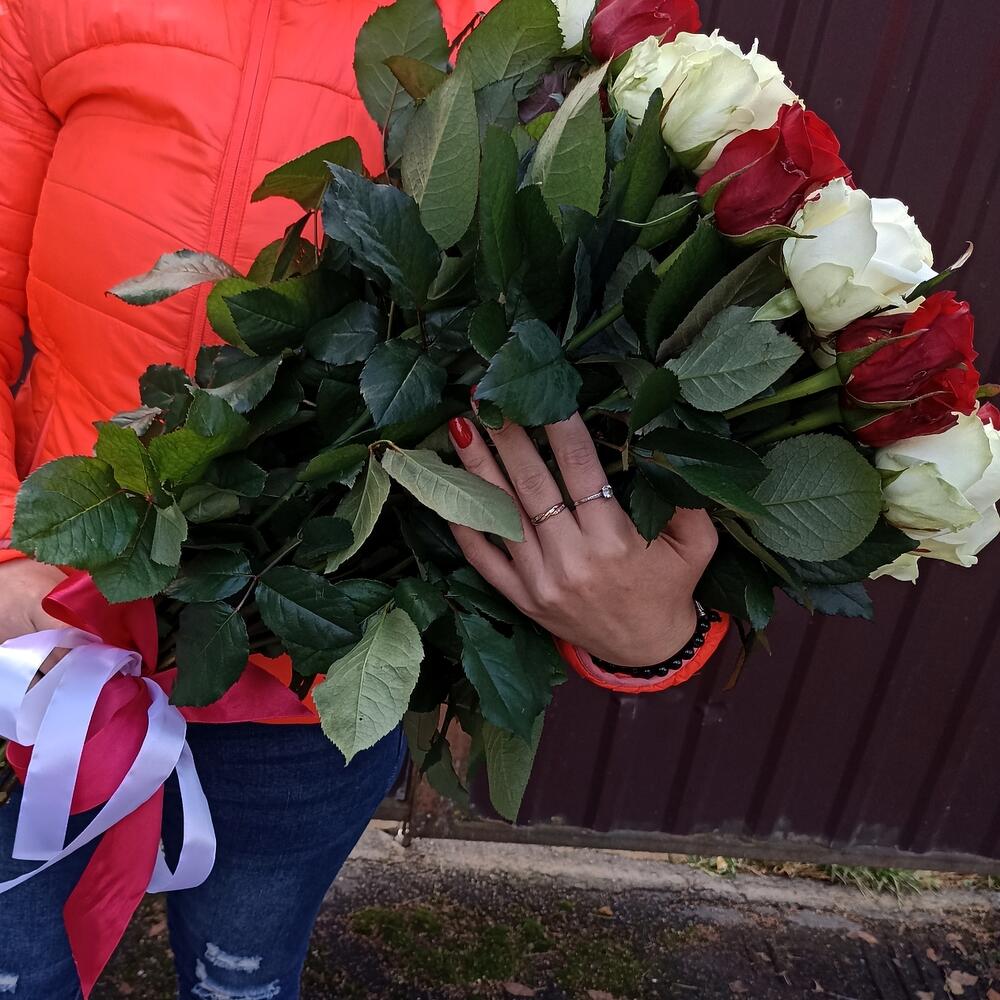 Лента атласная – 2 шт.роза россия 70 см красная и белая – 51 шт.