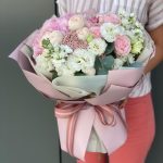 Букет Пудра из кустовой розы, эустомы и озотамнуса