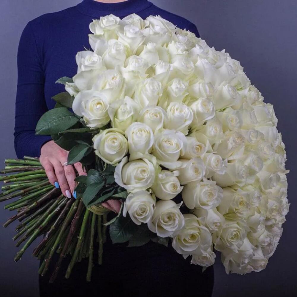 Букет из 101 высокой кустовой розы 60-70 см в стильной упаковке