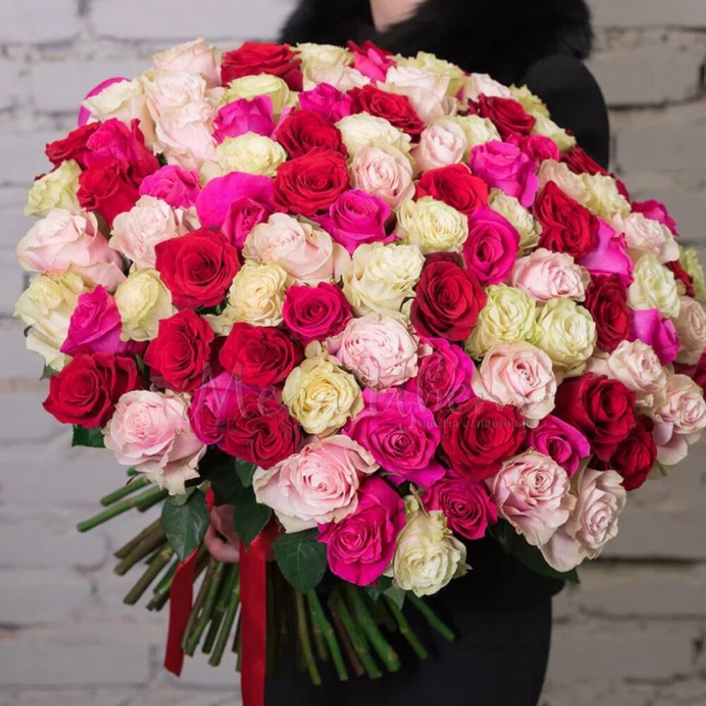 Букет из 101 розы микс 35-40 см (Кения) в упаковке