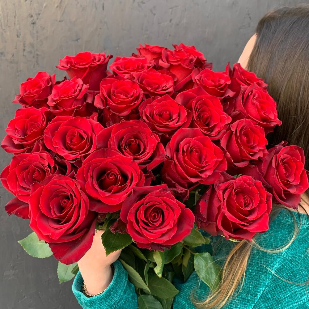 Букет из 25 длинных красных роз
