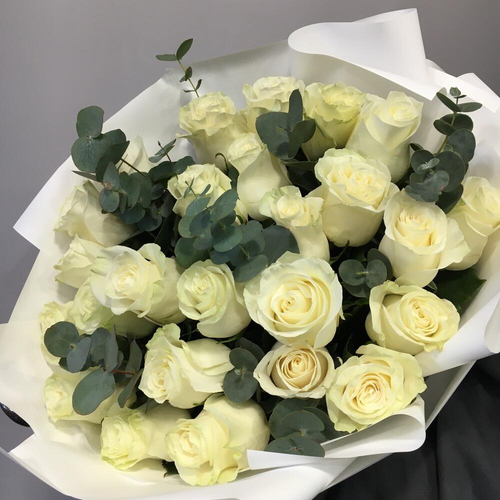 Букет из 25 Роз Аваланш высота 55 см