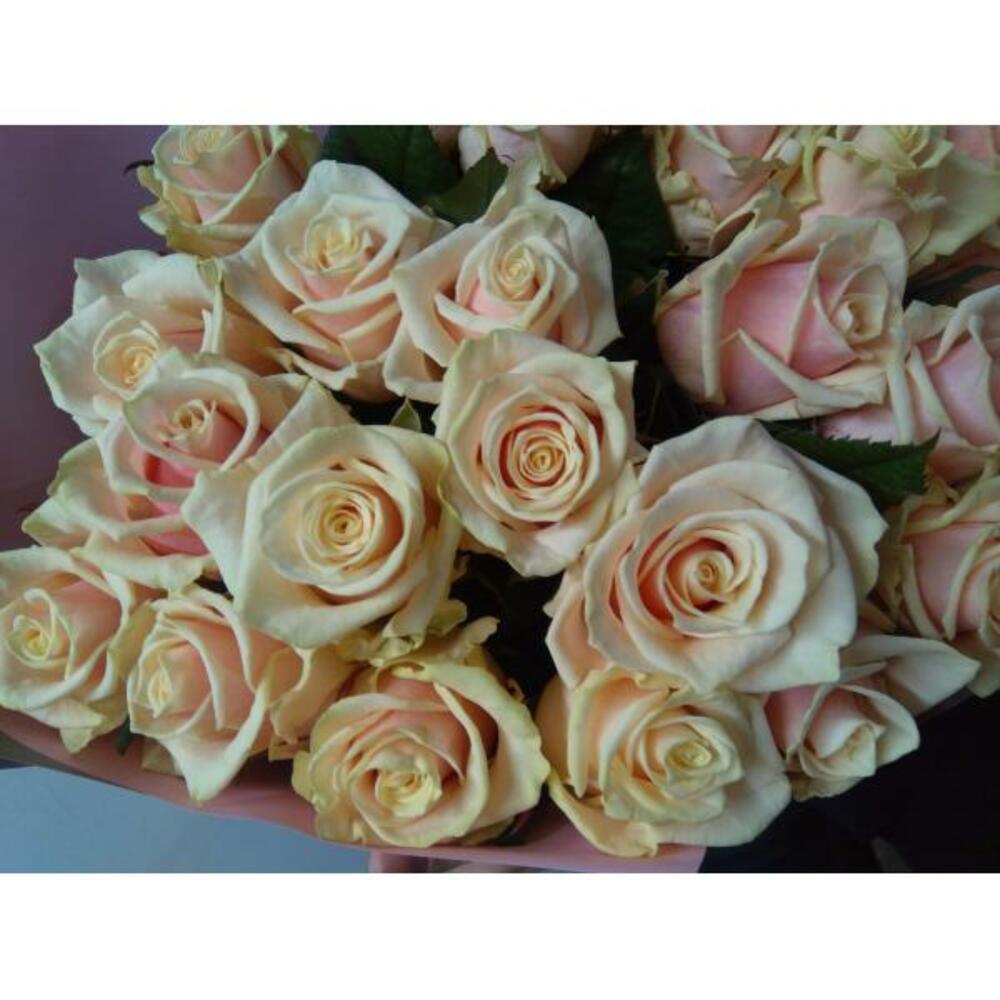 Букет из 25 роз, Талея, кремовая длиной 60 см
