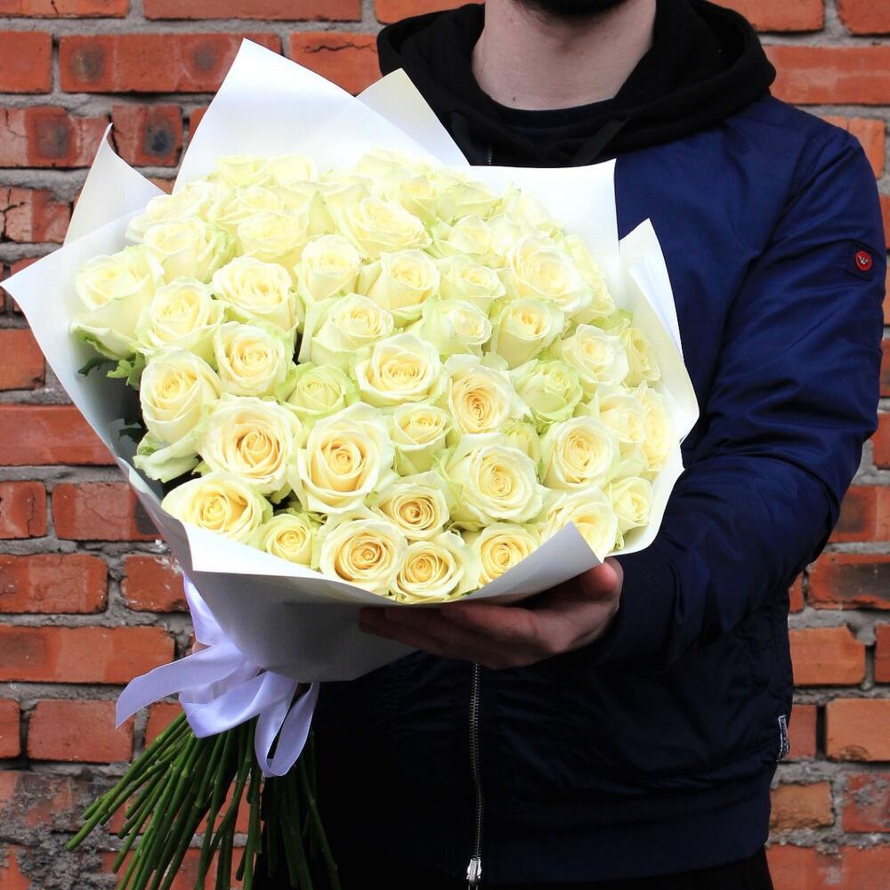 Букет из 51 белой розы (Кения) 30 см
