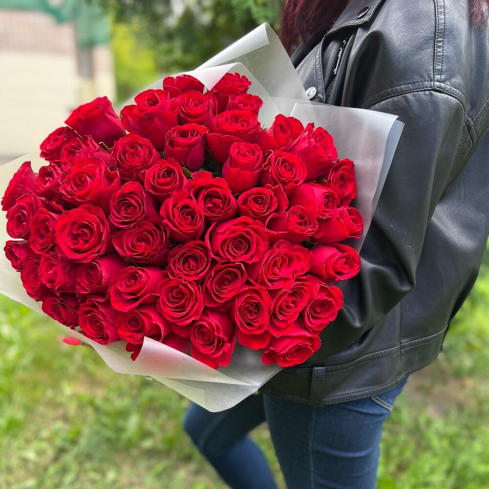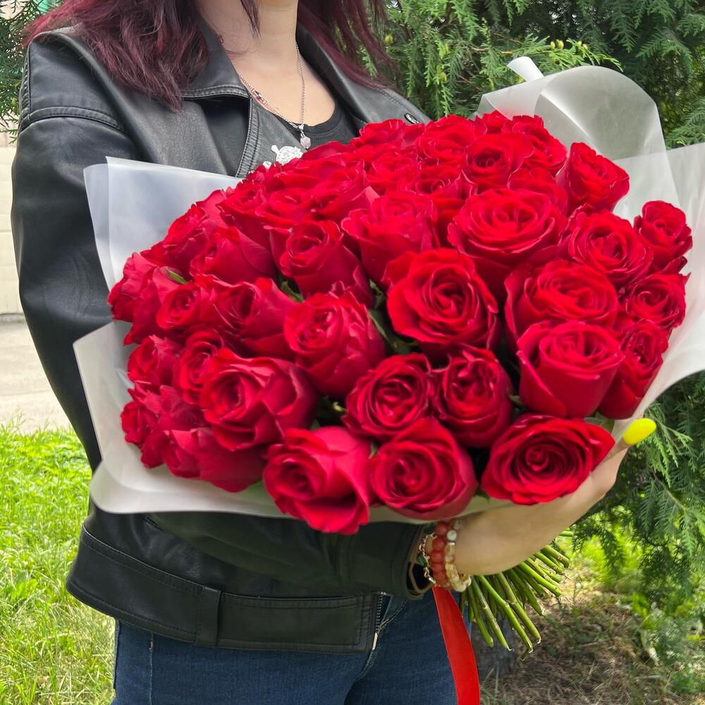Роза красная 40 см – 51 шт.Пленка матовая – 2 шт.