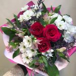 Букет из цикломеновых роз и белой хризантемы бакарди