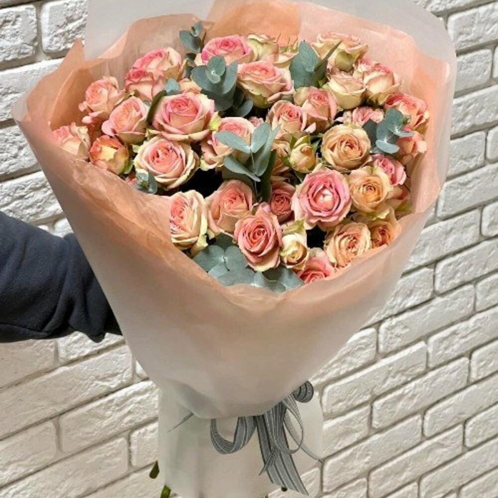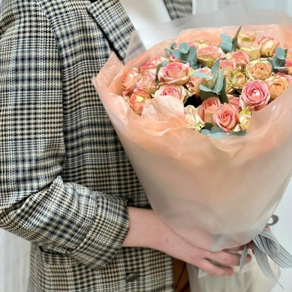 Букет Пудра из кустовой розы, эустомы и озотамнуса
