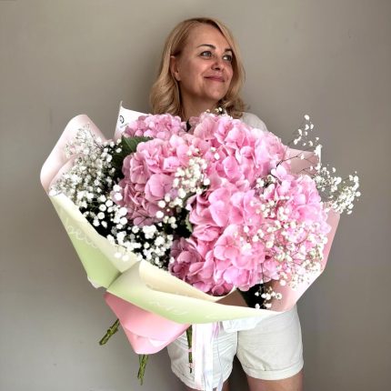 “Эвкалиптическая роскошь” гортензия и пионовидная кустовая роза