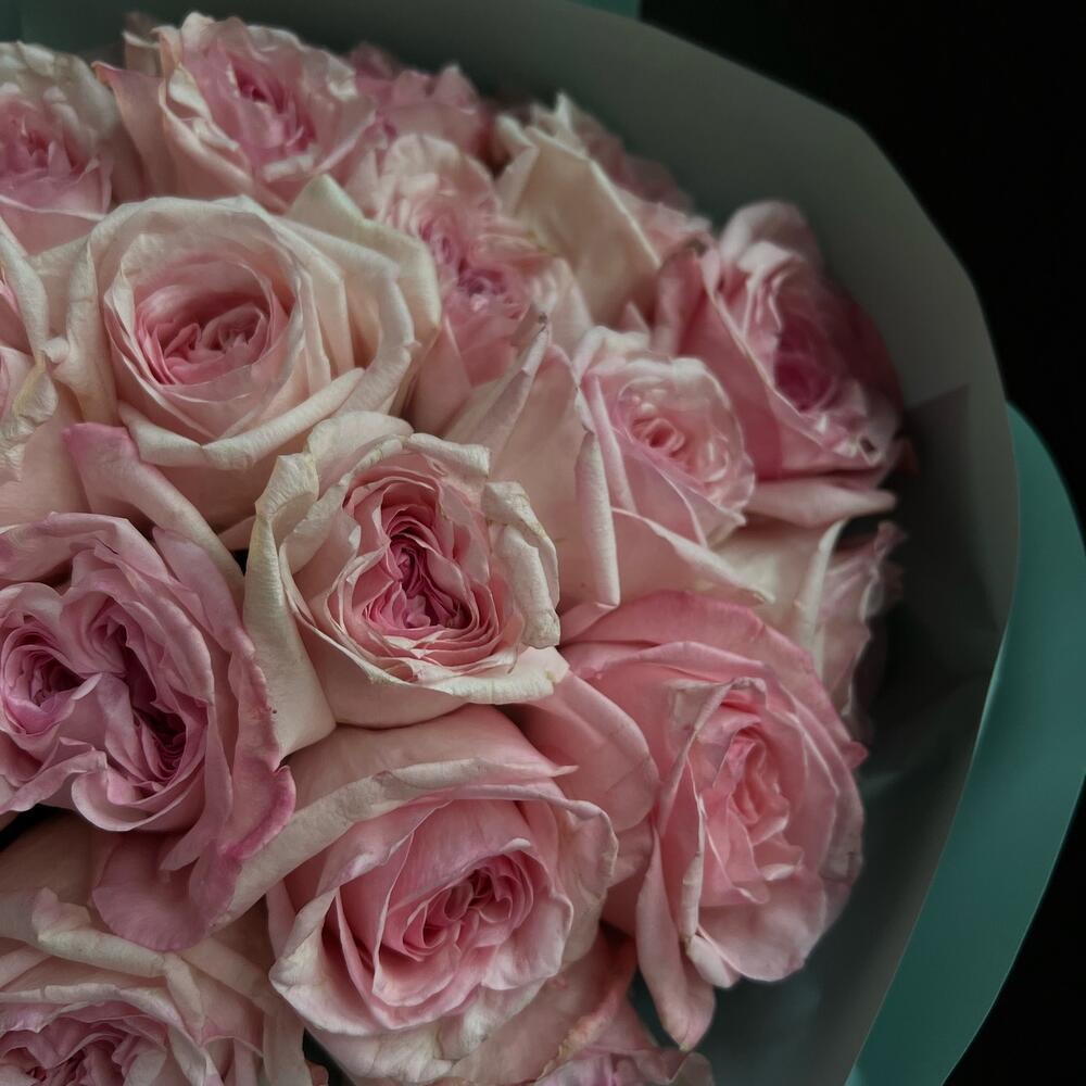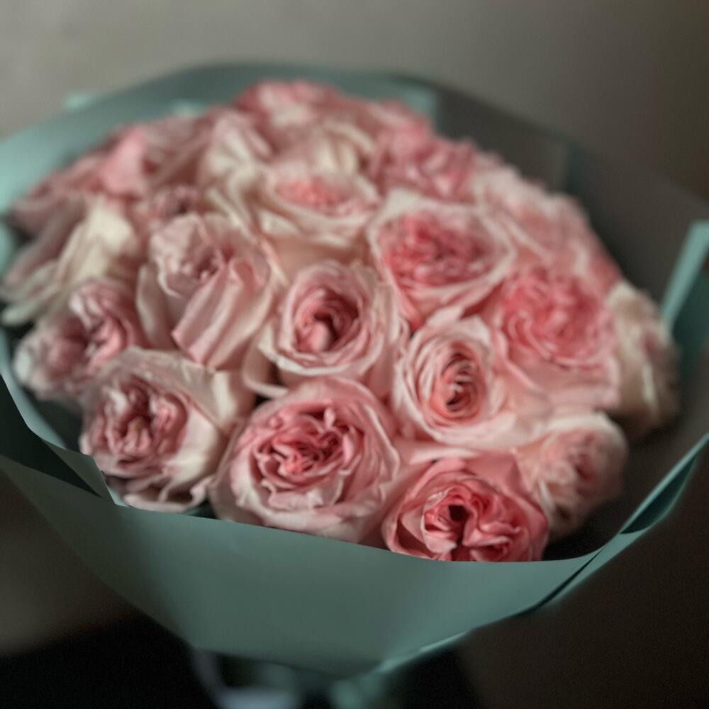 Атласная лента – 1 шт.декоративная упаковка – 1 шт.роза пинк охара(ароматная) – 25 шт.