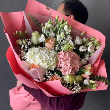 Гвоздики, Лизиантусы, Розы, Тюльпаны