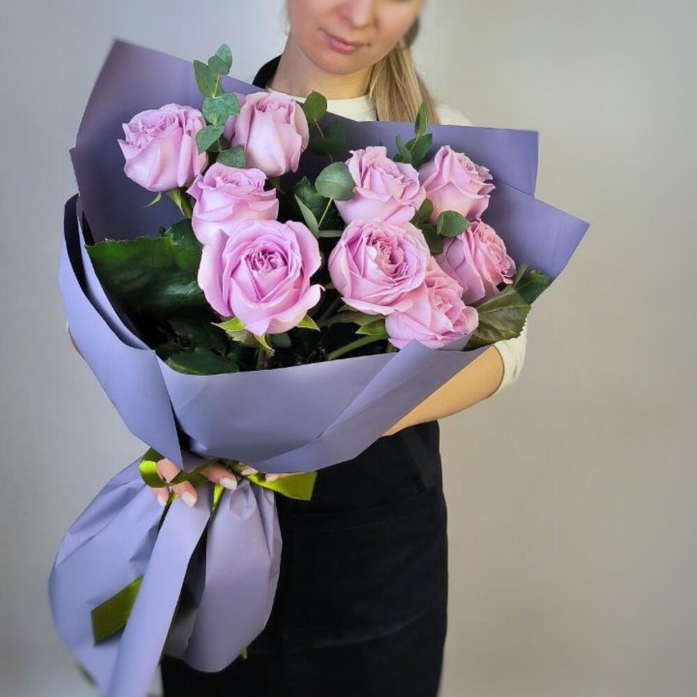 Букет из роз Маритим в сиреневом оформлении