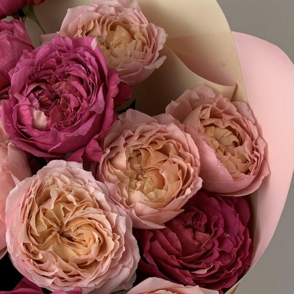 Букет кустовые пионовидные розы Джульетта 40см