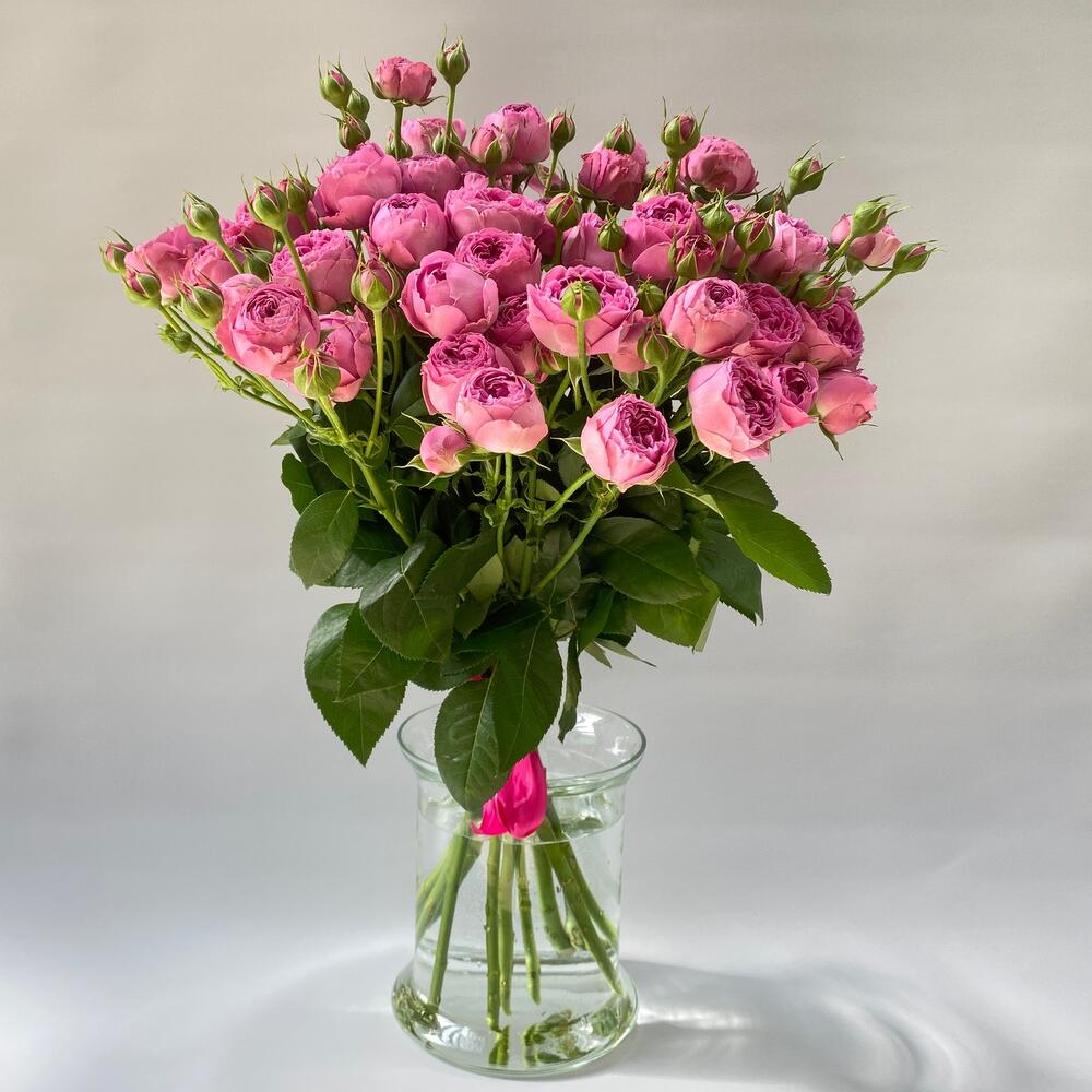 Лента атласная – 1 шт.Крафт упаковка – 1 шт.Аквабокс – 1 шт.Открыточка с вашими пожеланиями – 1 шт.транспортировочная упаковка – 1 шт.роза кустовая пионовидная мисти бабл – 11 шт.