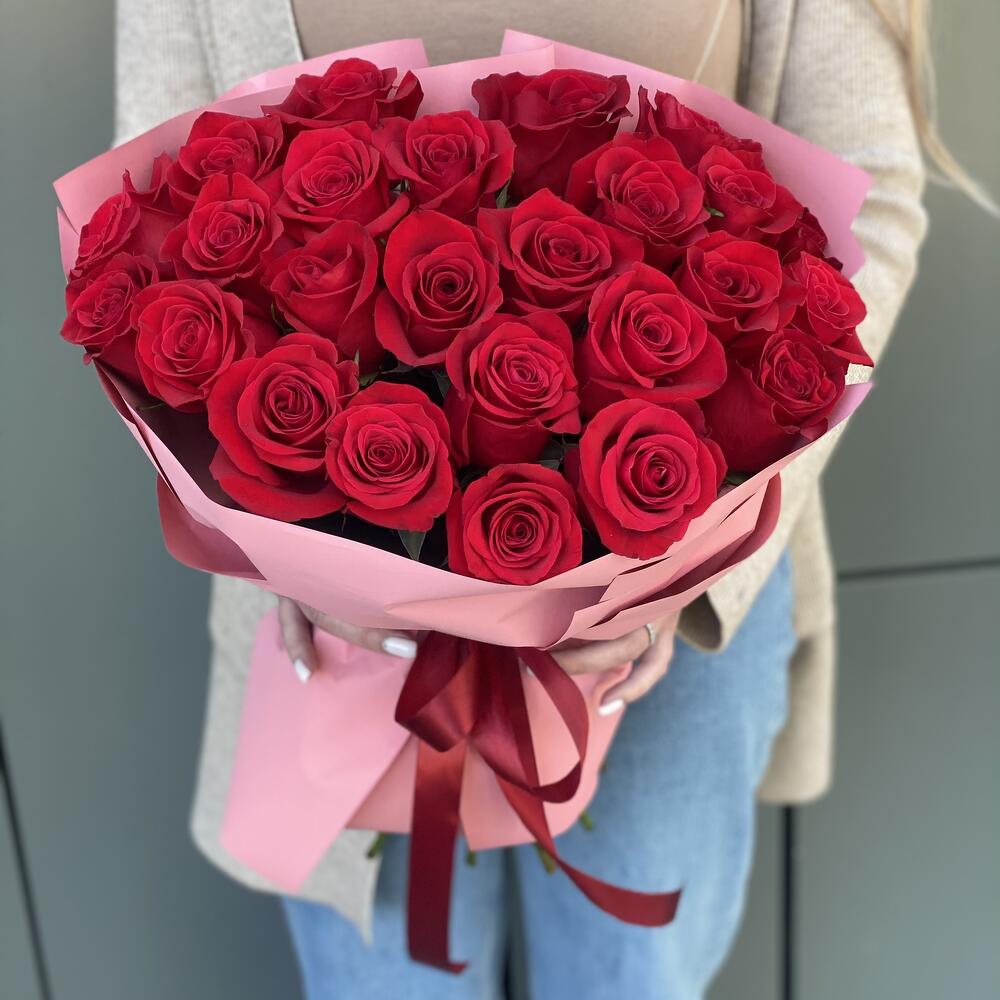 Метки: 25 роз, Красные розы, от 3000 до 4000 руб, Роза 50 см