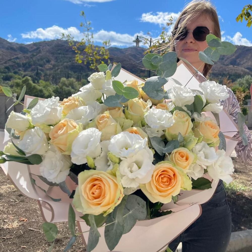 Авторский микс из розы и эустомы. Доставка цветов в Тбилиси.