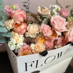 “Атлас☁️” – цветочная композиция с зефиром в деревянном ящике