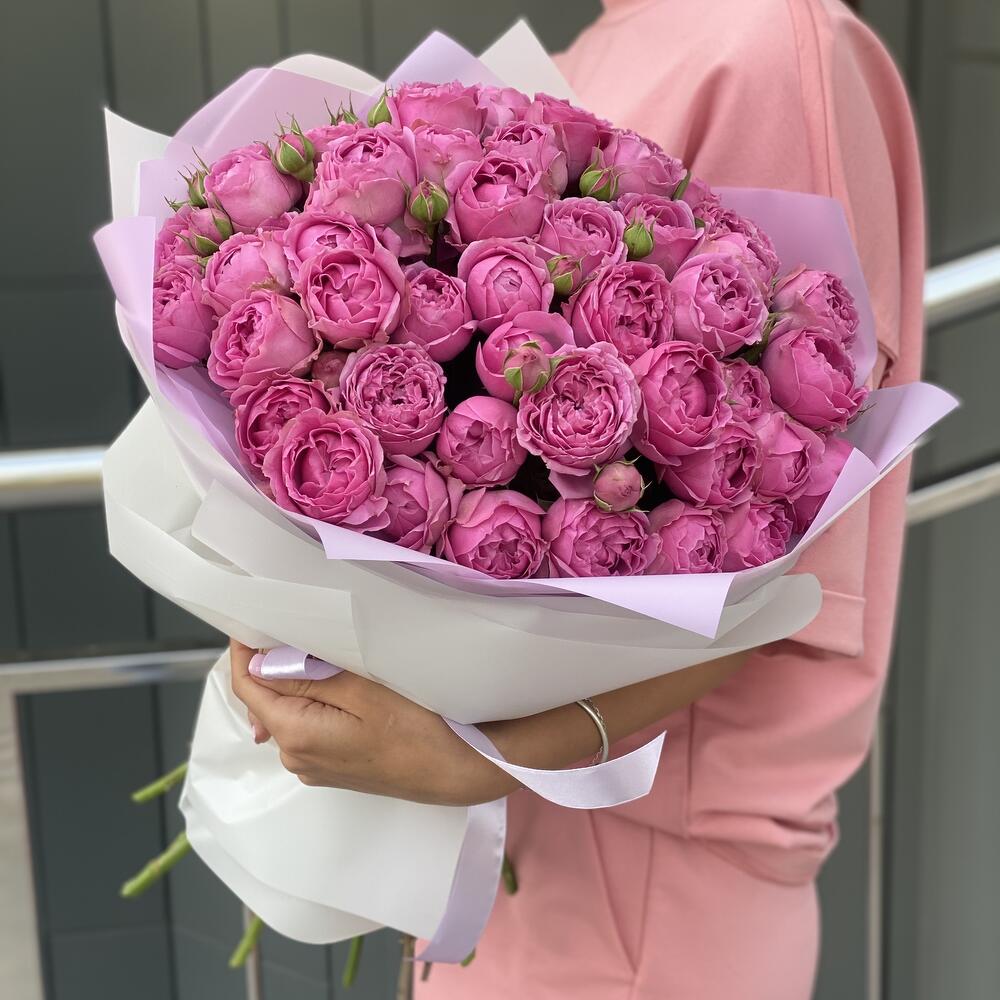 Писташ – 5 шт. Оформление – 1 шт. кустовая пионовидная роза misty bubbles – 15 шт.