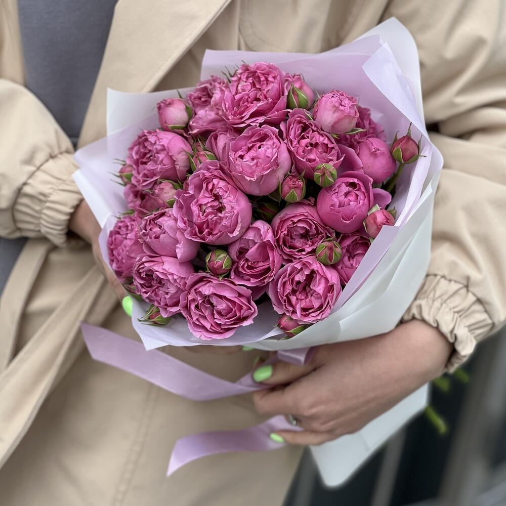 Букет из 5 веточек кустовых пионовидных роз в оформлении!