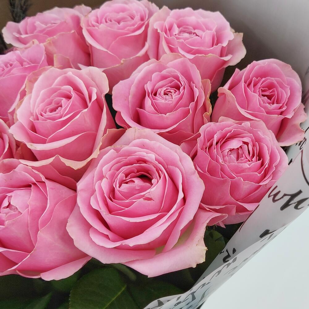 Стильный букет из эквадорских роз красивого розового оттенка с пышным, ажурным раскрытием бутонов.