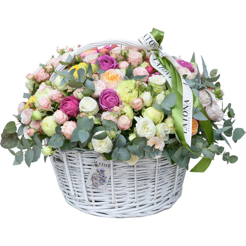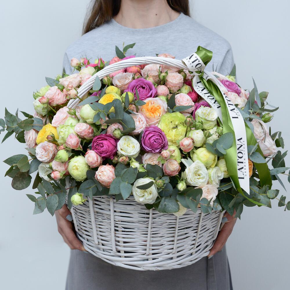 Корзина с пионовидными розами Camila