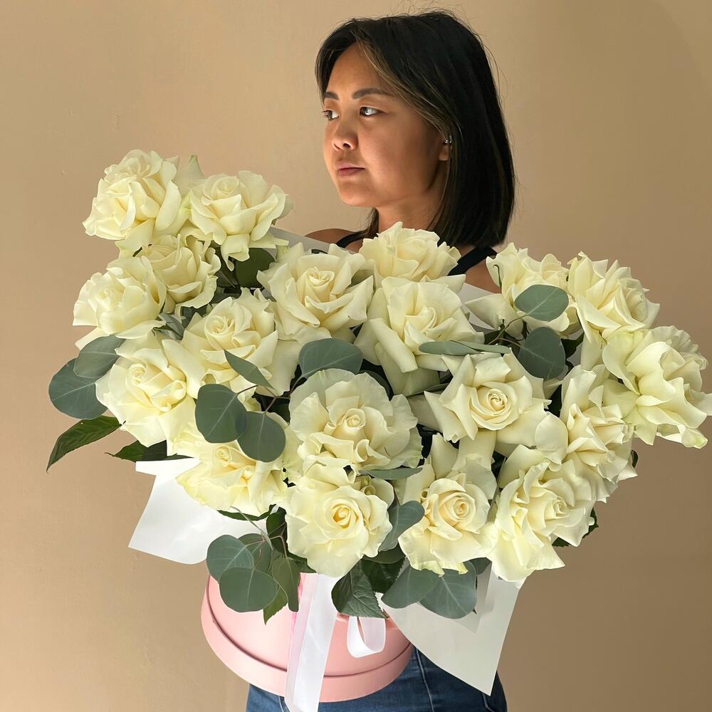 45 белых роз в Коробке