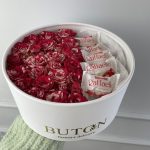 “Сладкое сердце ” – цветочная композиция с сладостями в коробке “Сердце”
