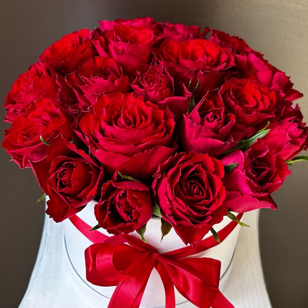 Композиция в коробке из 19 красных роз