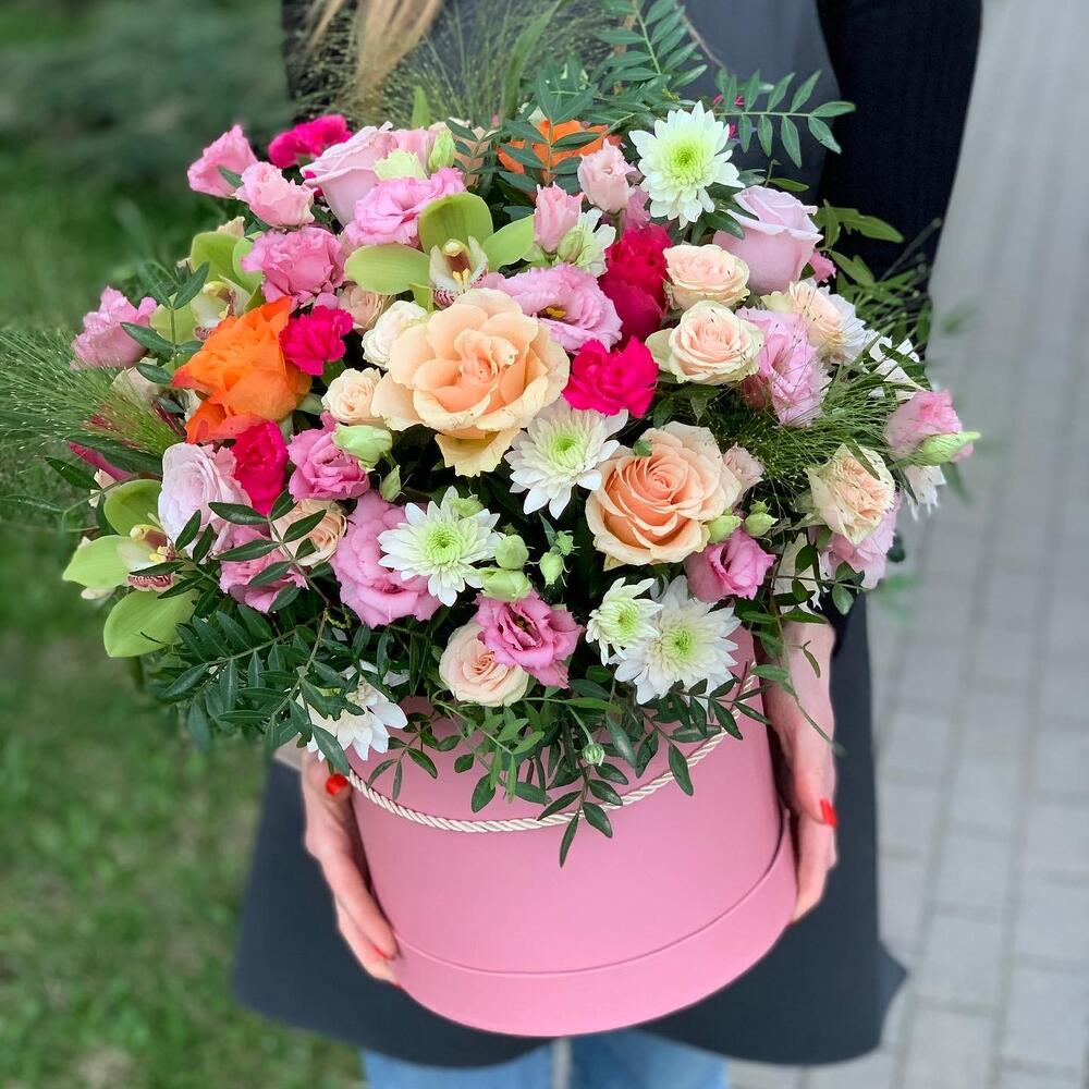 Букет в шляпной коробке