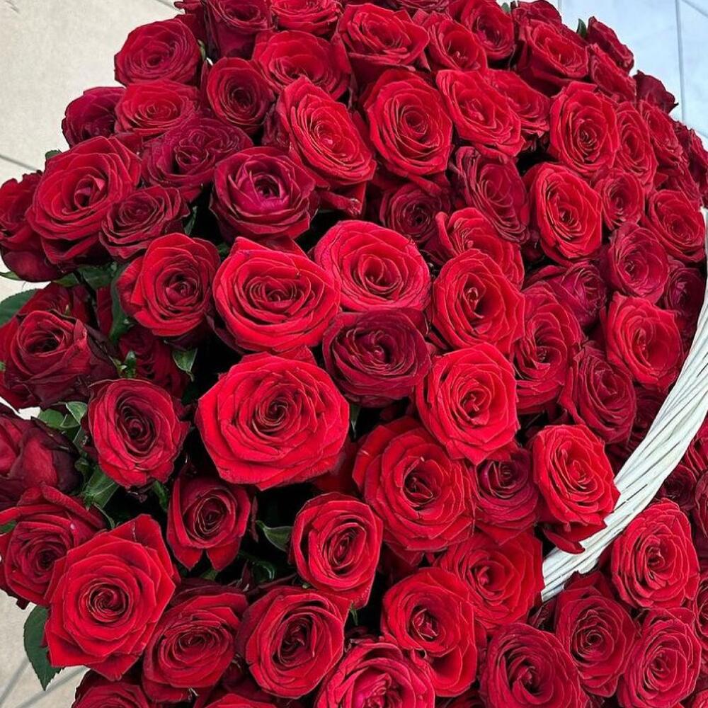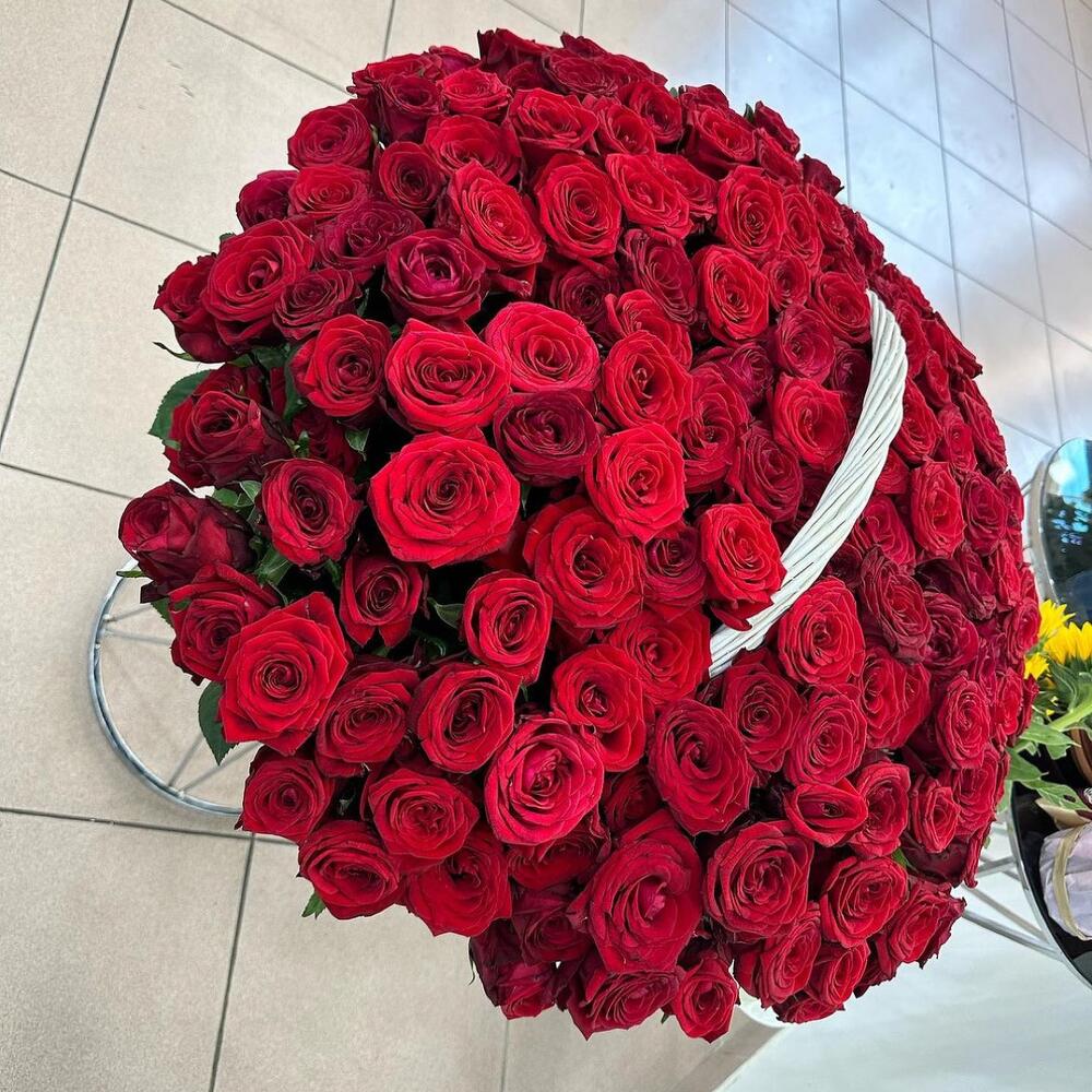 Роза Голландская – 151 шт. Корзина плетеная – 1 шт.