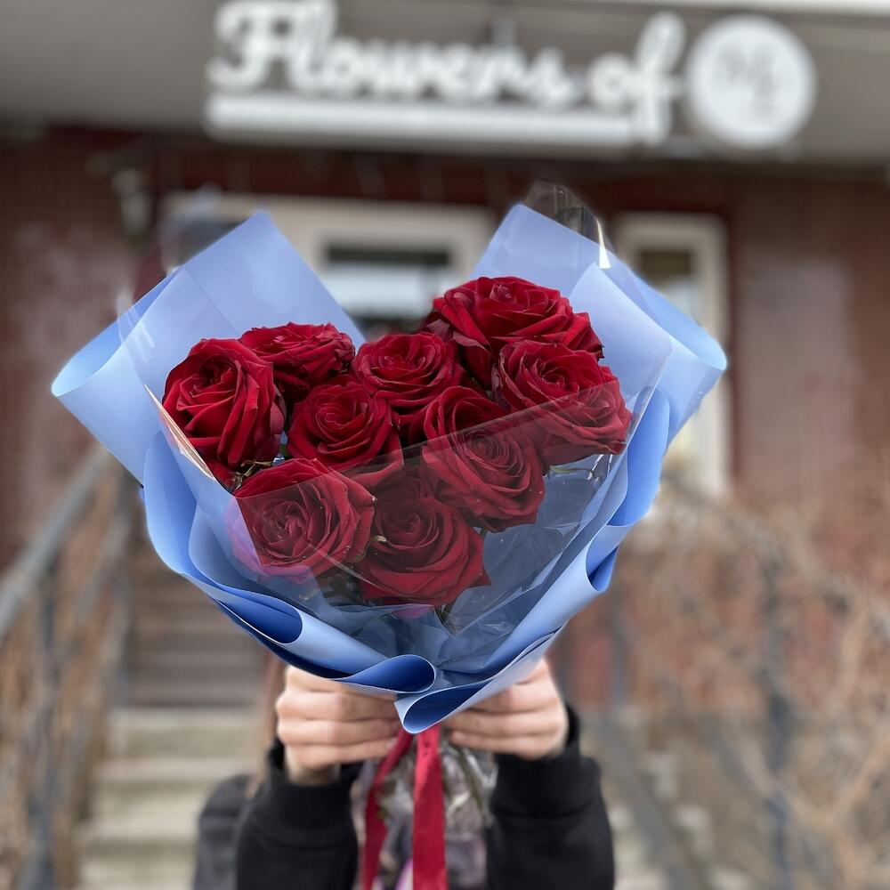 Авторская упаковка – 1 шт.роза эквадор 70 см (эксплоер) – 9 шт.