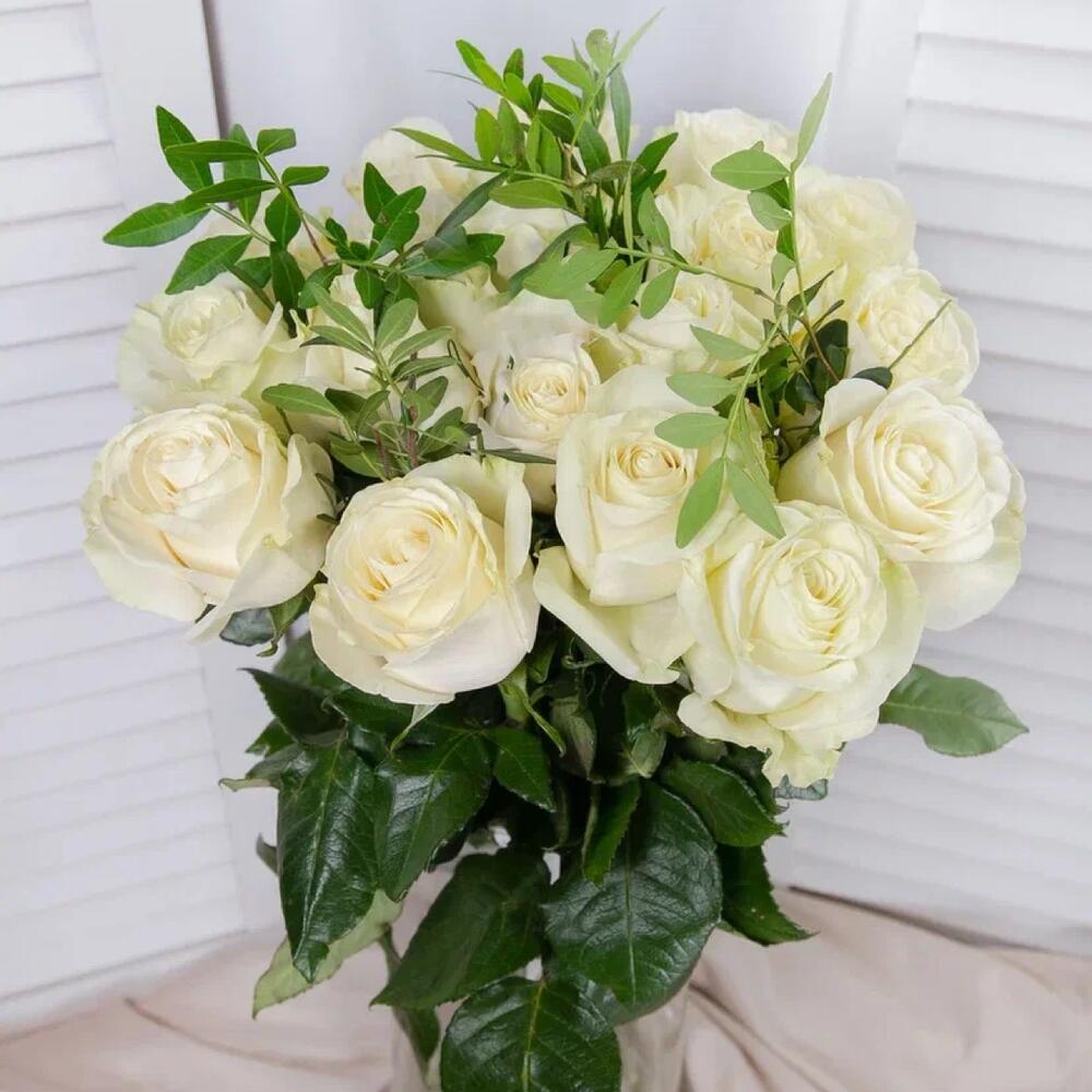 роза mondial 60 см – 19 шт.Фисташка – 2 шт.Пленка прозрачная – 1 шт.Лента атласная – 1 шт.
