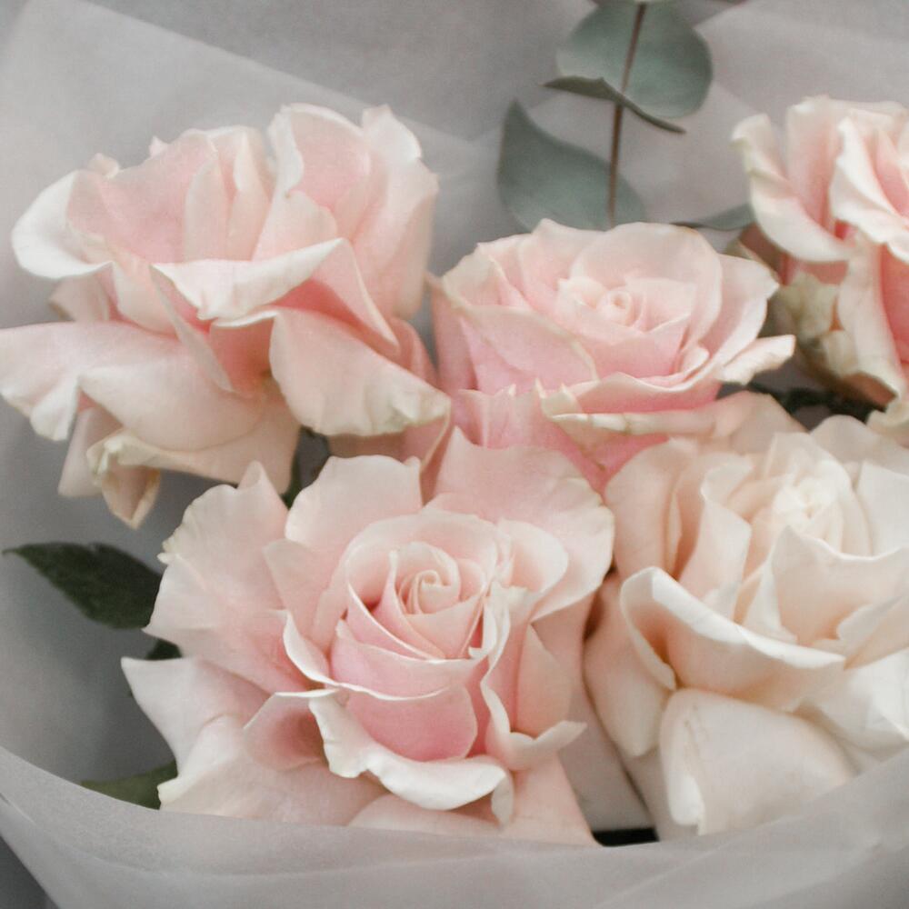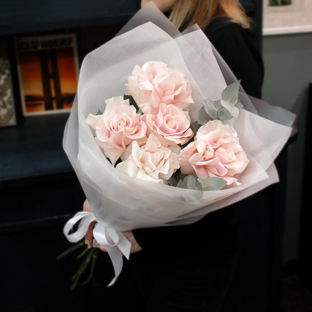 Французская роза – 5 шт.Эвкалипт – 1 шт.Матовая пленка – 2 шт.Тишью – 2 шт.Лента атласная – 2 шт.