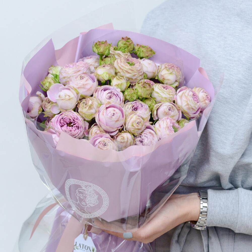 Авторский букет из пионовидных роз в крафт упаковке