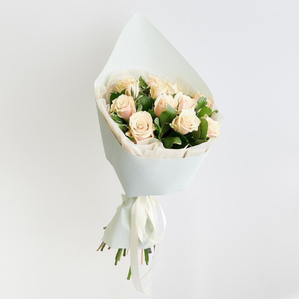 розы талея – 11 шт. Зелень – 5 шт. Открыточка с вашими пожеланиями – 1 шт. Упаковка дизайнерская – 2 шт.