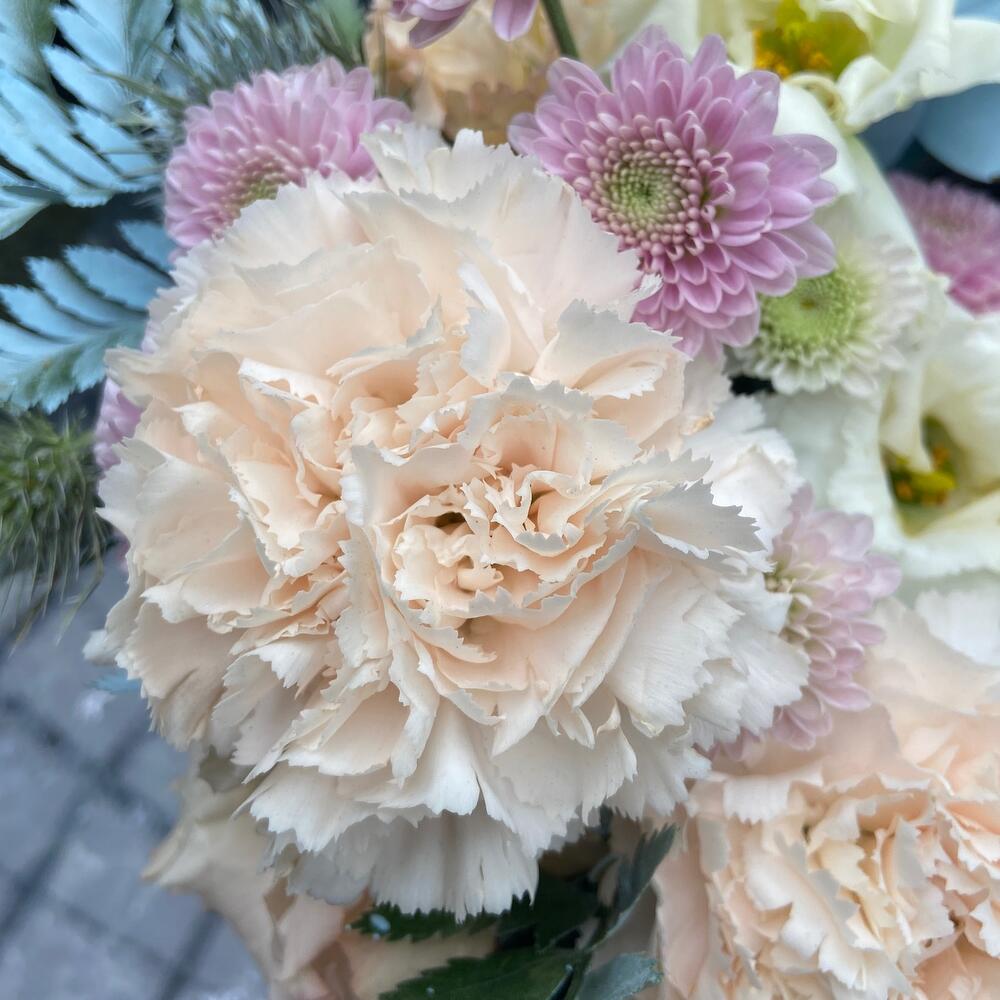 Гвоздики, Кустовые розы, Лизиантусы, Пионовидные розы, Розы