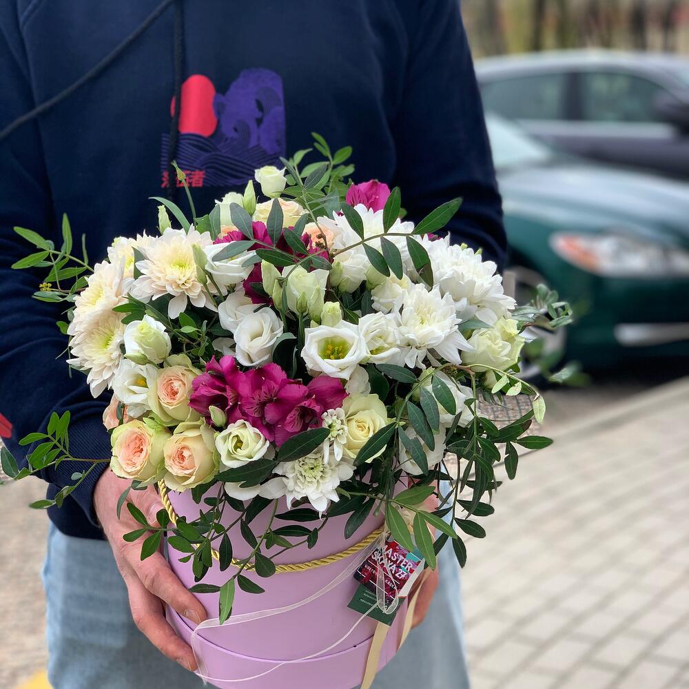 Категорий: Альстромерии, Кустовые розы, Лизиантусы, Розы, Хризантемы