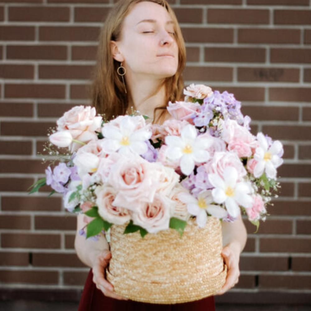 Метки: от 5000 руб, цветы в корзине