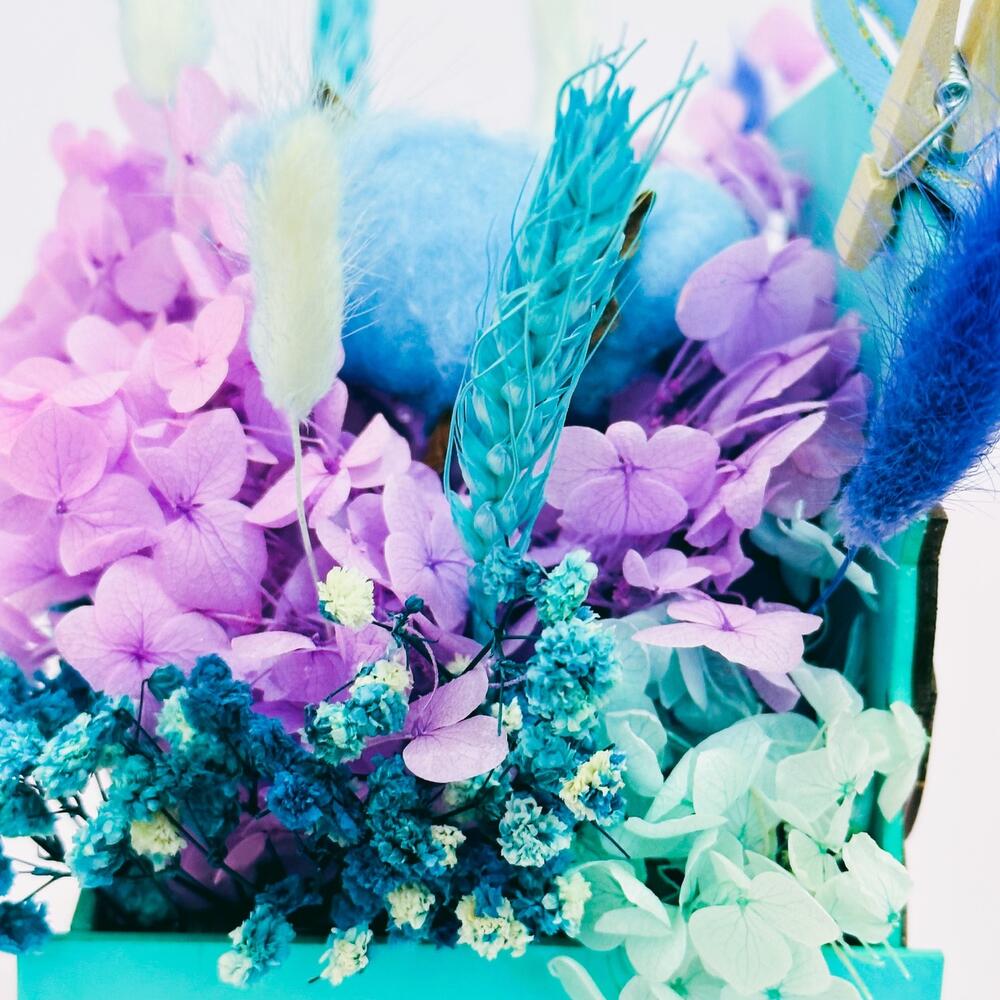 Упаковка дизайнерская – 1 шт.декоративные элементы – 3 шт.лагурус (сухоцвет) разноцветный – 5 шт.гортензия стабилизированная сиреневая – 1 шт.гипсофила стабилизированная бирюзовая – 1 шт.гортензия стабилизированная тиффани – 1 шт.пшеница (сухоцвет) разноцветный – 2 шт.хлопок (сухоцвет) голубой – 1 шт.кашпо деревянное фигурное сова – 1 шт.