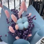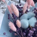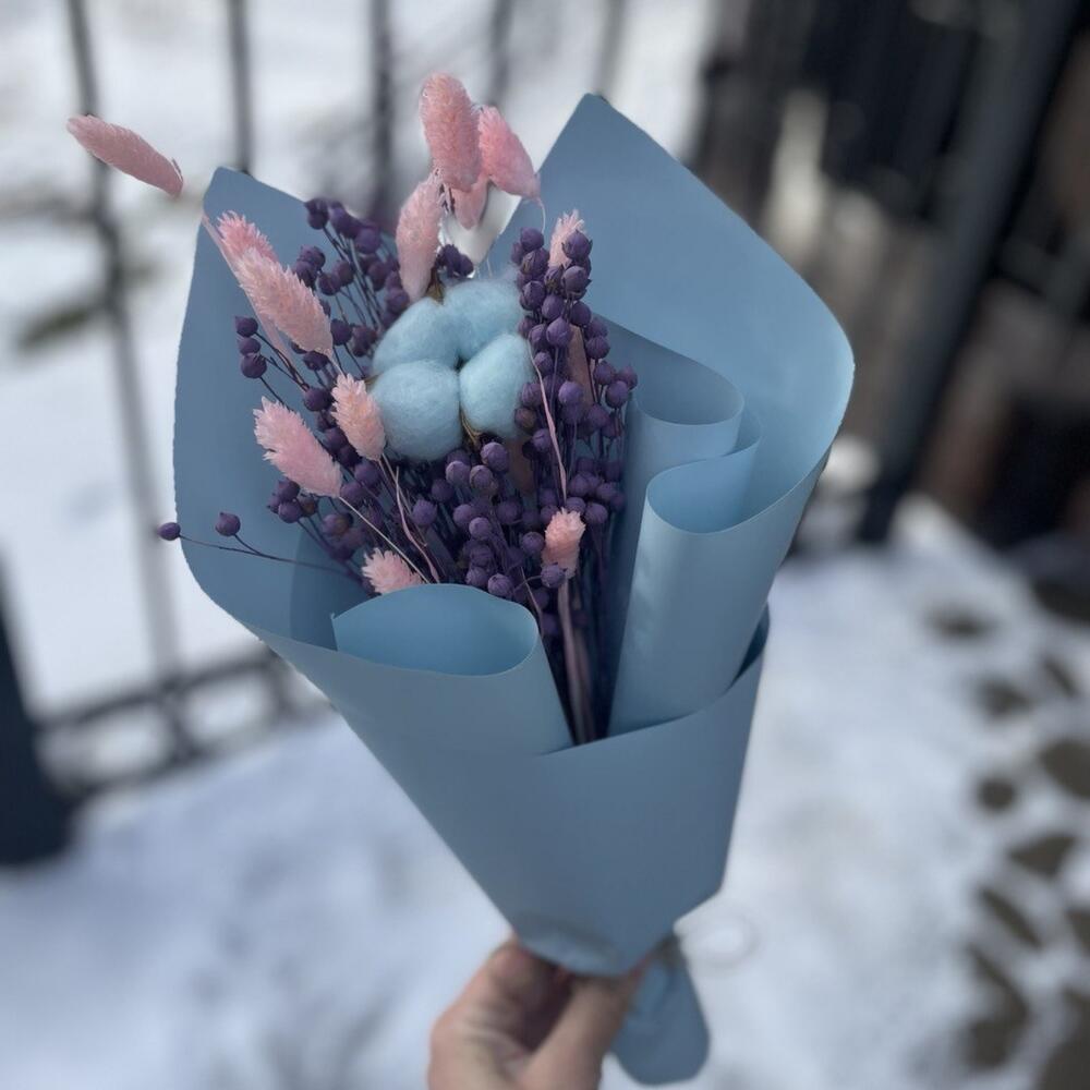 «Лавандовое созвездие» Букет из розы, гвоздики, статица и хлопка