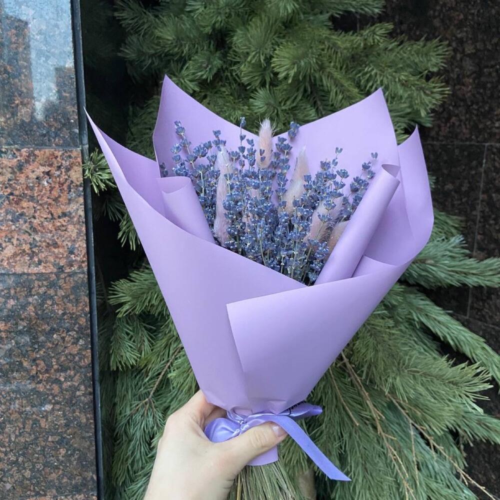 Упаковка – 1 шт.Лента атласная – 1 шт.Лаванда пучок – 1 шт.Лагурус (сухоцвет) – 10 шт.