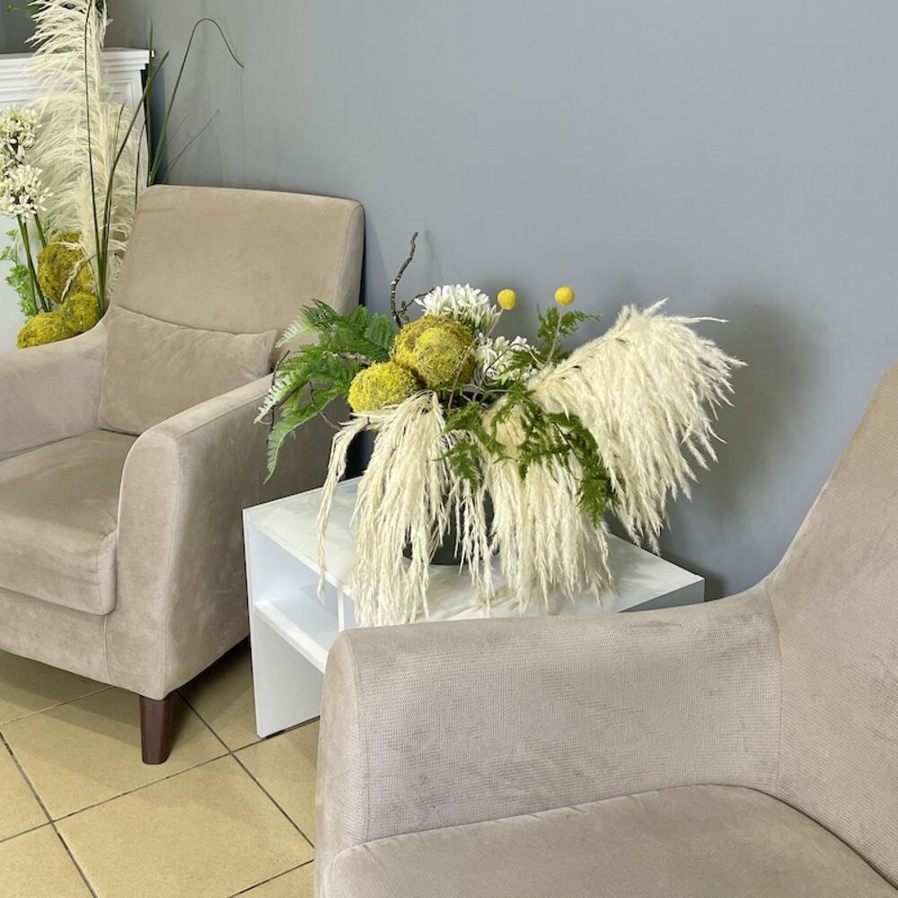 Интерьерная композиция из натуральных сухоцветов и искусственных веточек