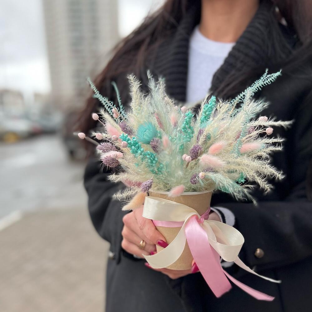 Композиция из сухоцветов в крафтовом стаканчике