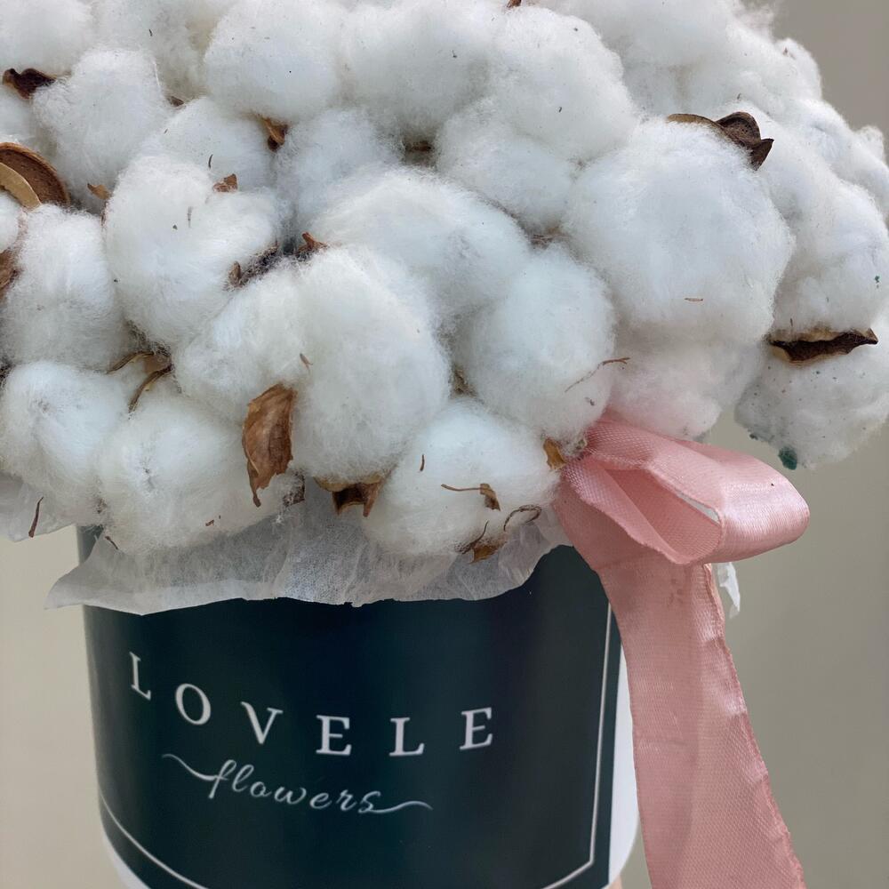 Хлопок – 3 шт.Шляпная коробка – 1 шт.Оазис флористический – 1 шт.