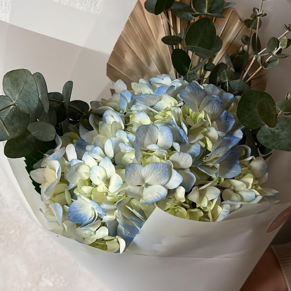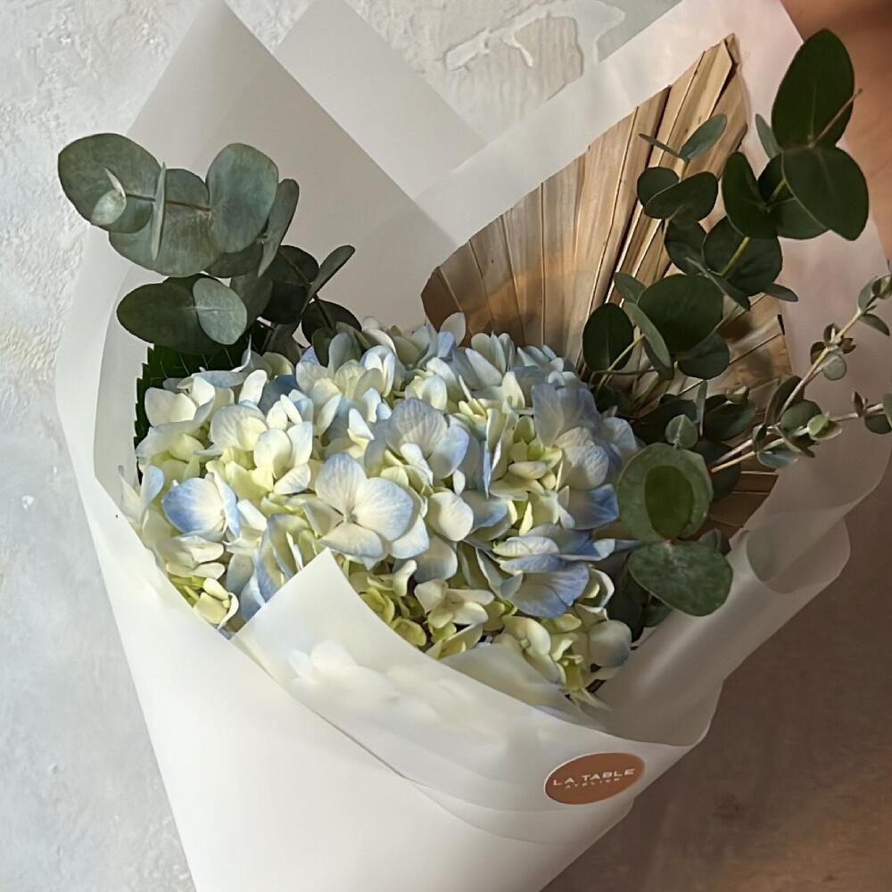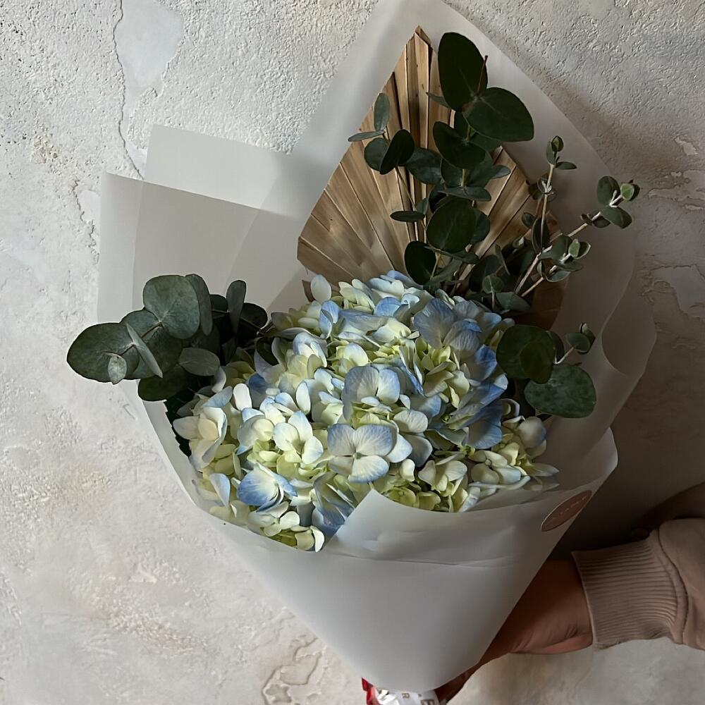 Гортензия – 1 шт.Эвкалипт – 1 шт.Сухоцвет – 1 шт.Упаковка дизайнерская – 1 шт.