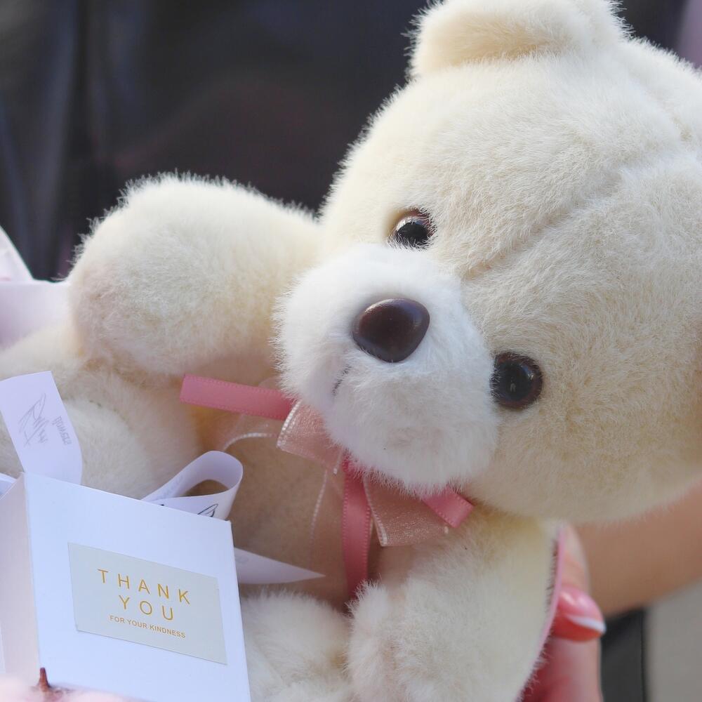 Подарочная коробка – 1 шт.Открыточка с вашими пожеланиями – 1 шт.плюшевый мишка – 1 шт.букет из сухоцветов – 1 шт.драже в красивой коробка – 1 шт.набор конфет “счастье” – 1 шт.