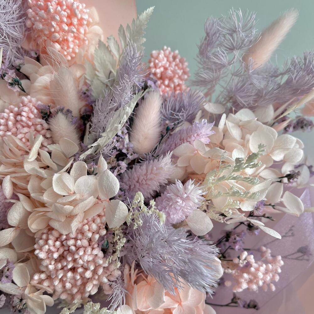 Гортензия – 1 шт.Лимониум – 2 шт.Озотамнус – 1 шт.Аспарагус – 1 шт.Упаковка дизайнерская – 1 шт.Лагурус – 7 шт.Фаларис – 5 шт.Овес – 4 шт.кармек – 2 шт.