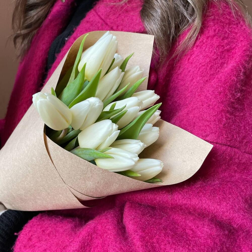 Крафтовая упаковка – 1 шт.Тюльпан белый – 15 шт.